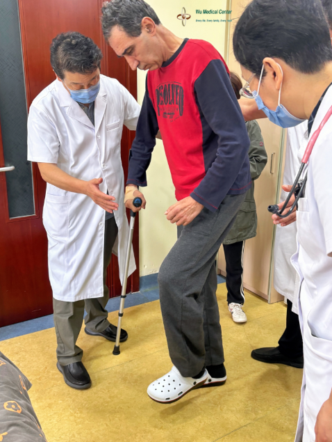 The patient's motor function is significantly improved, with an overall enhancement of about 30%, and the progression of the disease is halted. His respiratory function is improved, his speaking volume is increased, and episodes of interruption is decreased. Limb strength is improved, with proximal muscle strength in both upper limbs reaching approximately grade 4, allowing him to counter considerable resistance. His left hand grip strength is at grade 3, enabling him to grasp another person's fingers, and at a specific angle, he can pinch a reflex hammer between two fingers; his right hand grip strength reaches grade 4+. His lower limb strength is improved to grade 4; in a supine position, he can maintain a right angle in hip flexion and knee flexion in his left lower limb for over 10 seconds, and for his right lower limb, it is 13 seconds. The stiffness in his hip joints is significantly decreased, and the spasms and pain are disappeared. His range of motion is improved, as he can open his legs to approximately a 60-degree angle without discomfort. The speed and stability of the knee-heel-tapping test are increased compared to before. He requires less support while walking, his walking speed is increased, turning becomes noticeably more flexible, and his stability is improved. His energy levels, physical fitness, and exercise endurance also are increased.