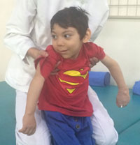 After 21 days treatment he spoke more words, his swallowing function was better, he ate faster, the muscle power of his neck and head was increased and he was able to raise his head for longer. His muscle tone decreased, the trunk spasm alleviated and he was able to maintain a sitting position with someone’s help. His hands were more flexible, he was able to raise his arms and grasp things. He had more power in his legs and he was now able to stand with someone’s help.