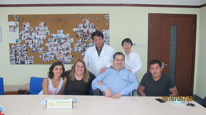 Simone had a movement disorder in the trunk and limbs and was diagnosed with spinal muscular atrophy at the local hospital. He was able to move his limbs freely before he was 11 years old and could perform simple activities of daily life. There was a gradual decline in motor functioning in the last 10 years and Simone was eventually unable to support his body, beginning about 5 years ago, and he needed the assistance of a bracket to maintain a sitting position. Chewing and swallowing became difficult and breathing required more effort. His ability to cough was weak and his speech was slurred. The four limbs had no movements. Simone also had difficulty controlling the movements of his head. Because he hadn't received effective treatment in Argentina, so he looked therapy in all over the word and decided to Wu Stem Cells Medical Center for treatment.When Simone first arrived at our medical center, there was no breakage or hemorrhagic spots on the skin. The thorax was not symmetrical. He had difficulty breathing. The respiratory sounds in both lungs were clear. The cardiac rhythm was regular, with no obvious murmur. The abdomen was distended and soft, with no palpable masses. The elbows are flexed and cannot stretch. The spinal column curves to the right. The forearms could bend to a 90 degree angle with the upper arms when passively stretched.Throughout the examination of the nervous system, Simone was conscious and alert. His calculation abilities and orientation were normal. His speech was slurred. The examination of the vision and visual field was normal. The neck muscles were weak and he had poor control over the movements of his head and could not move the head flexibly. The muscle strength of both upper limbs' proximal-end was level 0. The fingers of both hands had slight movement but couldn't grasp any objects. The muscle strength of both lower limbs' proximal-end was also level 0, and only had slight activity. There was muscle atrophy in the upper limbs, lower limbs, shoulder girdle and torso. The muscle tone of all four limbs was reduced. The tendon reflexes of all four limbs were diminished.